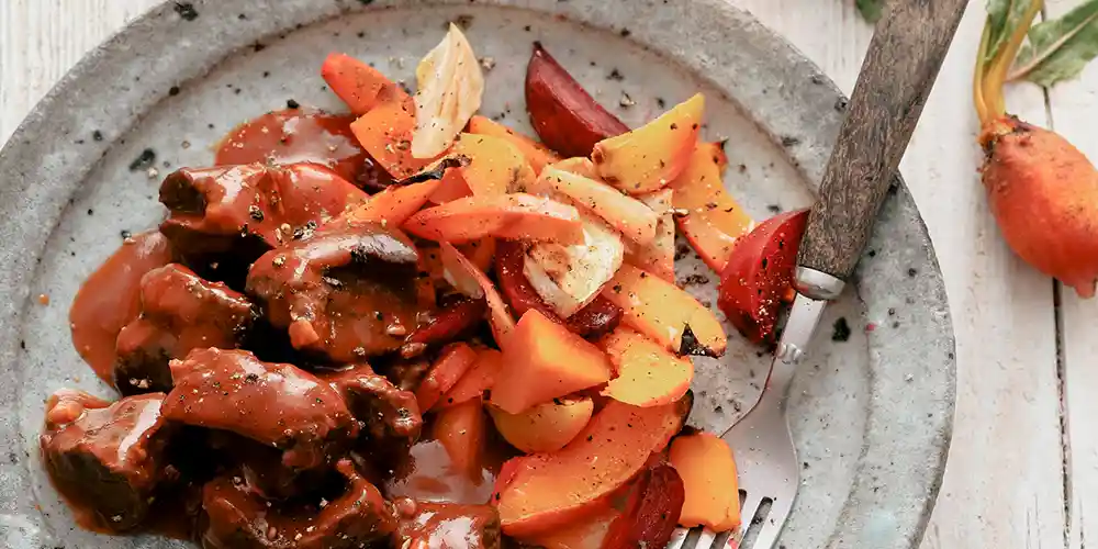 Wildragout mit Ofengemüse